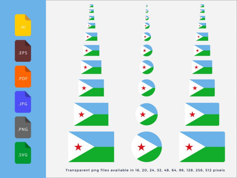 Take a glance at Djibouti flag vector icon in modifiable square, rectangle and rounded shape to be utilized in web design, mobile apps and print campaigns. Happy designing.